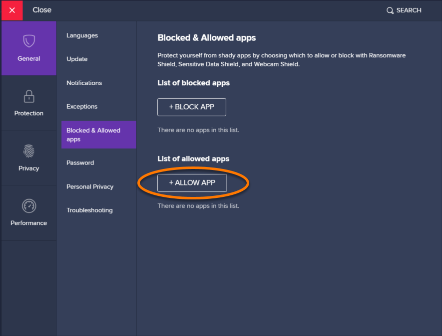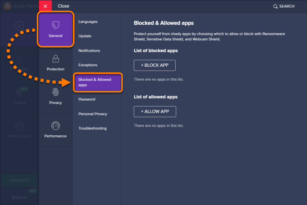2) Selecione Geral ▸ Aplicativos bloqueados e permitidos.