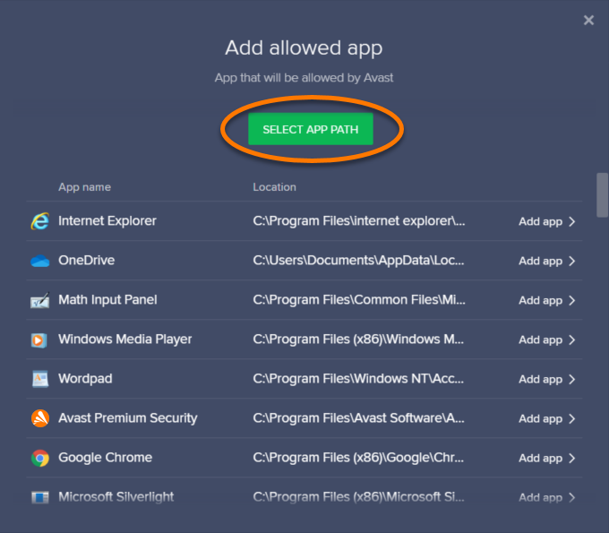4) Clique em Selecionar caminho do aplicativo e depois localize o aplicativo e clique em Abrir